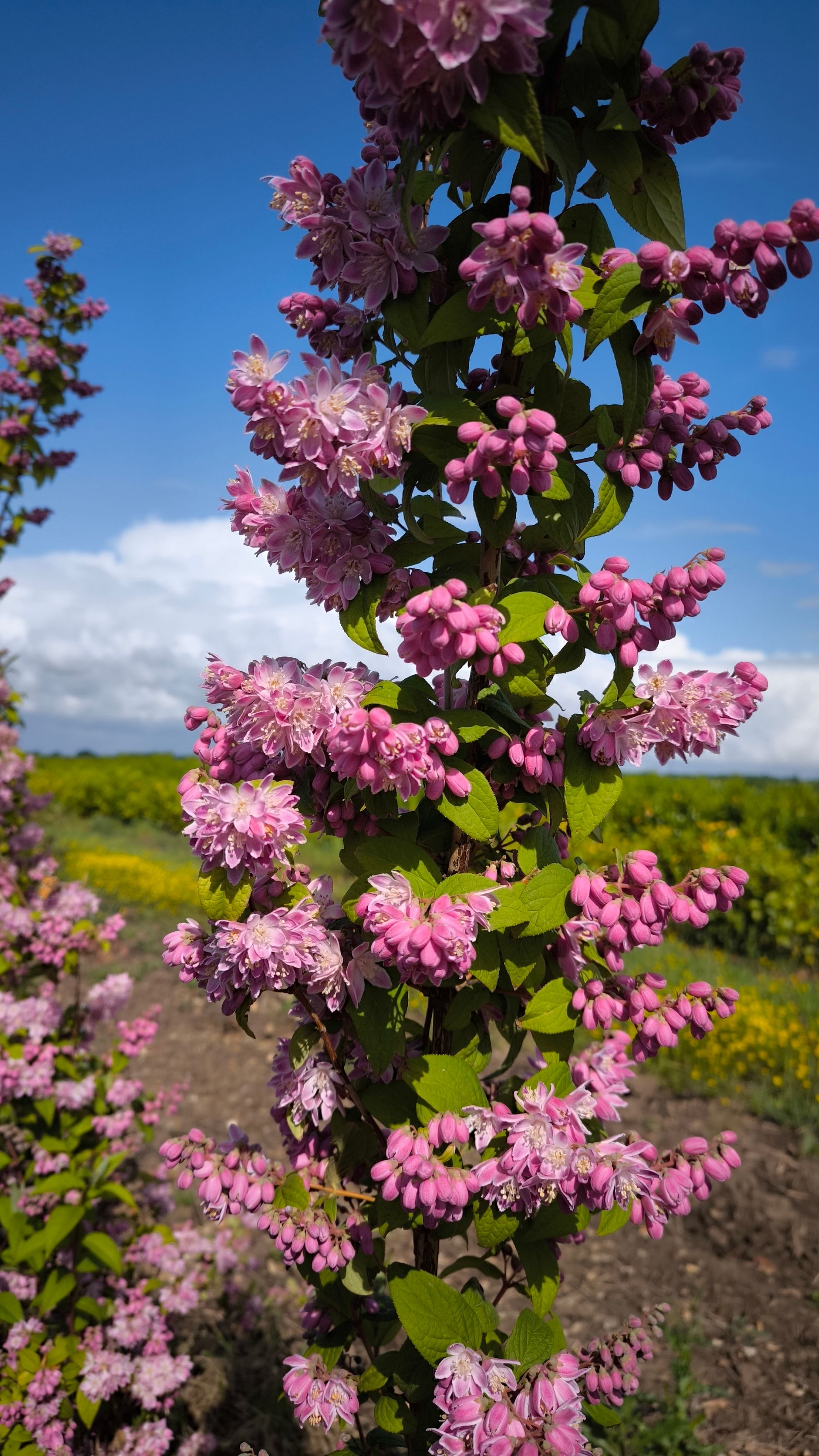 La culture des arbustes en pleine terre permet de proposer des plants de belle taille et bien fournis. Elle permet également de respecter le cycle naturel de la plante et limite fortement la production de déchets. Les filets coton ou grillagés utilisés pour la préparation des mottes sont biodégradables.