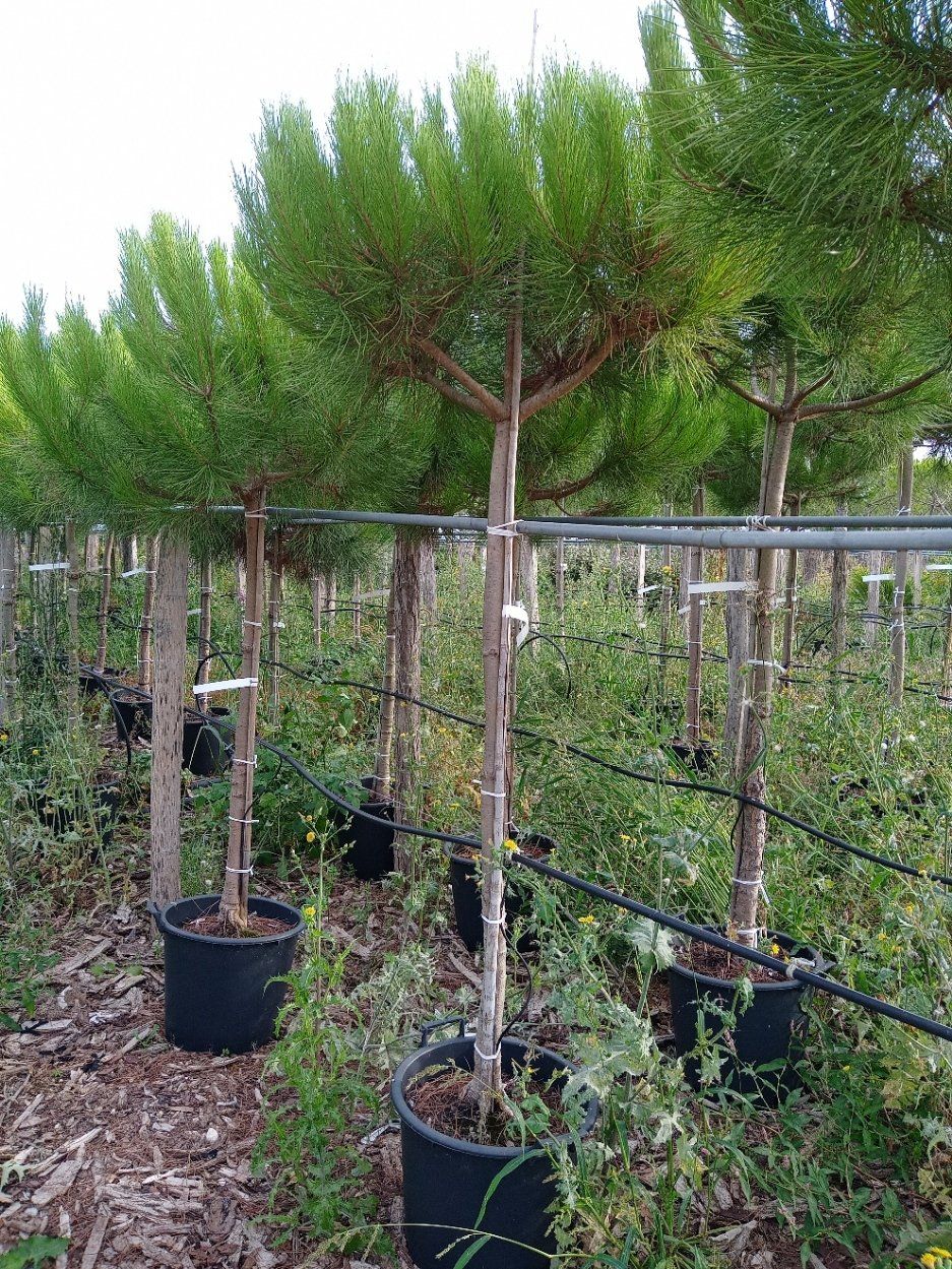 Nous pouvons donc vous proposer toutes les tailles de pins parasols du jeune plant à l'arbre de 400/450 cm.
